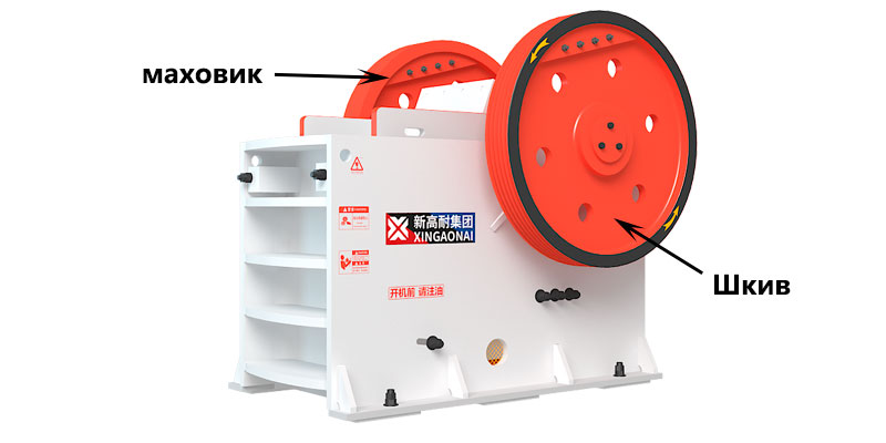 Щековая дробилка оснащена большим маховиком. Ее основная функция заключается в сохранении энергии движения дробилки во время процесса дробления, повышении стабильности работы дробилки и сокращении времени запуска двигателя. Ее основные функции заключаются в следующем. :