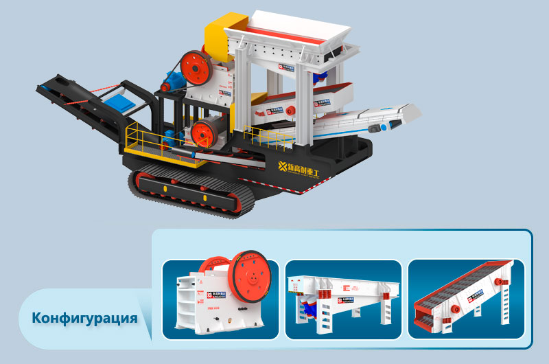 Интегрированная конструкция экономит пространство: щековая дробилка, питатель, вибросито, конвейер и другое оборудование объединены в единую конструкцию, что позволяет сэкономить такие затраты, как строительство инфраструктуры и укомплектование персоналом дробильной площадки.