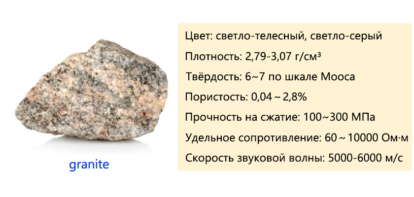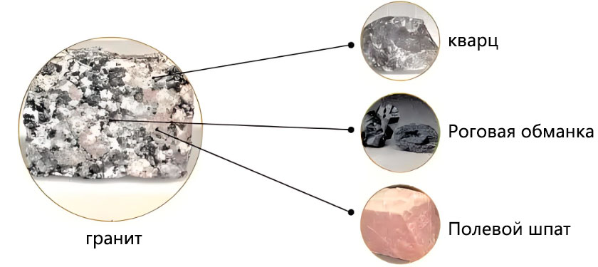 Гранит в основном состоит из кварца, амфибола, полевого шпата, слюды и т. д.