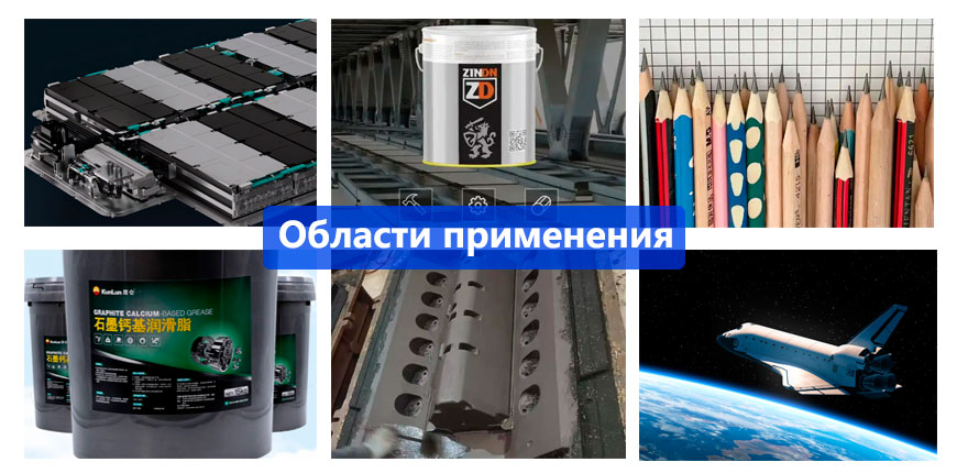 Графит — очень распространенный природный органический минерал, который в основном состоит из углеродных элементов, уложенных в однослойную чешуйчатую структуру. Графит не только имеет восковую текстуру и металлический блеск, но и относительно низкую твердость. Он также обладает характеристиками теплопроводности, электропроводности, смазывающей способности, высокой термостойкости и химической стабильности. Он широко используется в следующих отраслях: