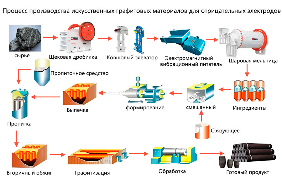Процесс производства искусственных графитовых материалов для отрицательных электродов