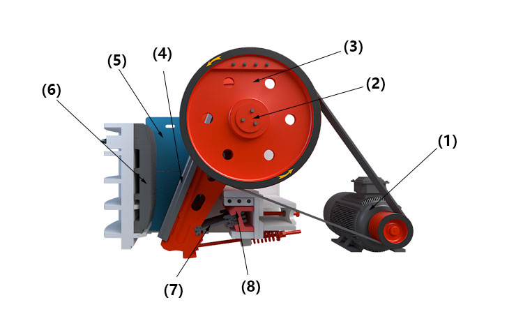 Клиновидные подушечки регулируются быстро и удобно; подвижная челюстная пластина из высококачественной литой стали, эксцентриковые валы из высококачественного сплава, а также четыре двойные стойки одинаковых характеристик с роликовыми подшипниками сердца, стабильные и надежные.